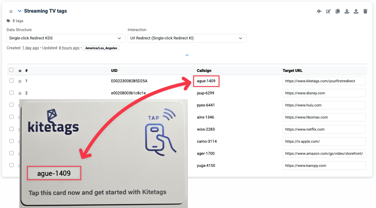 Every Kitetag has an easy-to-read callsign so you can quickly find it in your account and update the URL.